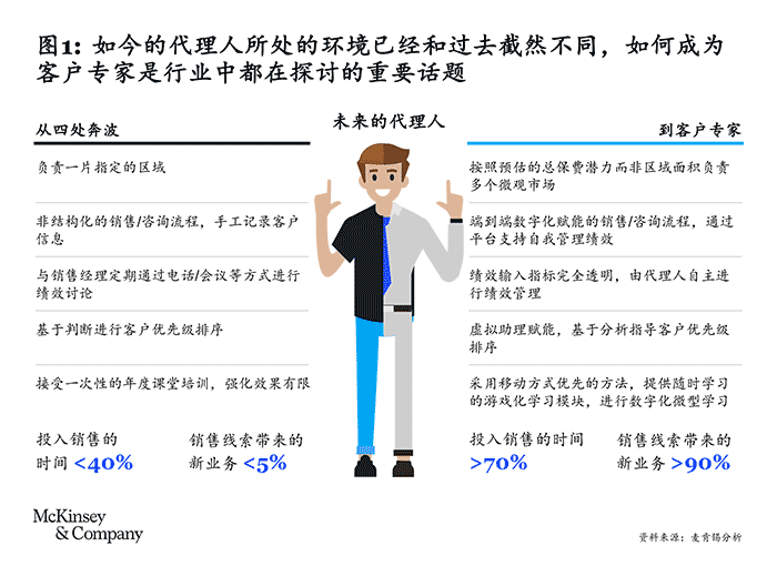 近年来,代理人渠道转型已从过去“投石问路”的摸索阶段,逐渐迈入“勇往直前”的快速发展期。当前行业已经充分认识到,代理人渠道的未来就是专业化与职业化,应尽快实现从“产品导向”向“客需导向”过渡。产品设计理念的调整与全面的数据分析,能够有效推动险企与客户互动方式变革,并通过跨渠道、个性化沟通服务和精准的客户需求预测,引起客户共鸣、实现客户所想所愿,最终提供高于客户预期的服务,形成一整套高效、透明、匹配度高的产品及服务模式(见图1)。