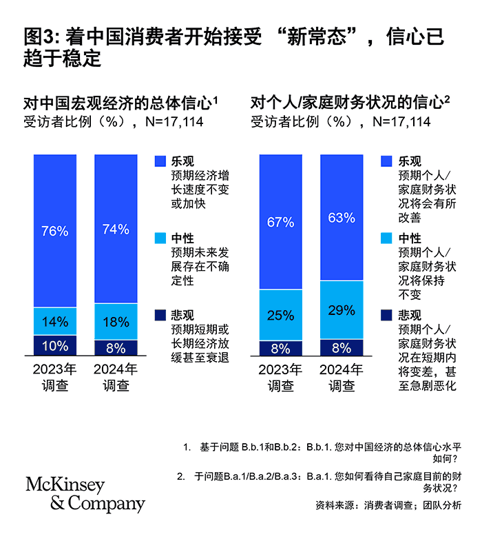 消费者接纳新常态,顺势而为:历经数年信心受挫、消费意愿低迷的艰难时期后,中国消费者正开始走出低谷,迈入一个接受并适应新常态的时期。