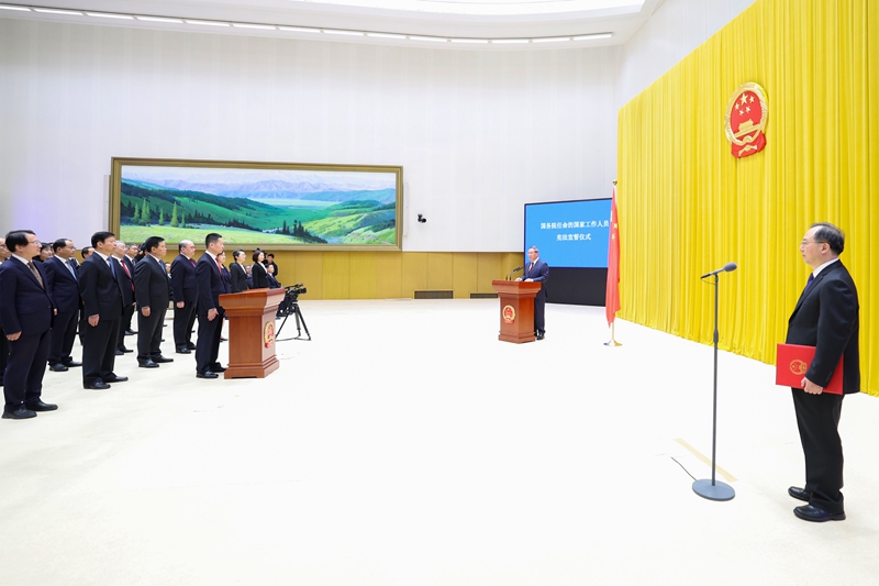6月21日,国务院举行宪法宣誓仪式。国务院总理李强监誓。新华社记者 刘彬 摄