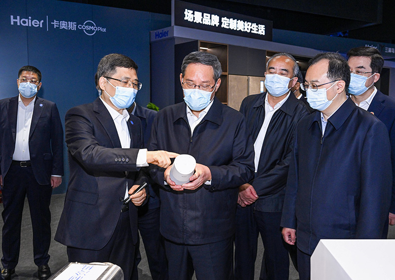 在青岛,李强前往中国-上海合作组织地方经贸合作示范区,听取示范区建设情况汇报。他指出,建设这一示范区是习近平总书记亲自宣布的重大战略决策,是党中央赋予山东省和青岛市的重大使命。要努力打造“一带一路”国际合作新平台,拓展合作领域,加强资源对接、优势互补,共同锻造长板,实现互利共赢。李强考察了海尔集团、海信集团,了解企业运营情况,察看产品和服务展示。他希望企业更好适应用户需求,开展个性化定制服务,打造更多具有竞争力的产品,进一步开拓国内外市场,同时积极推动工业互联网更好为中小企业赋能。