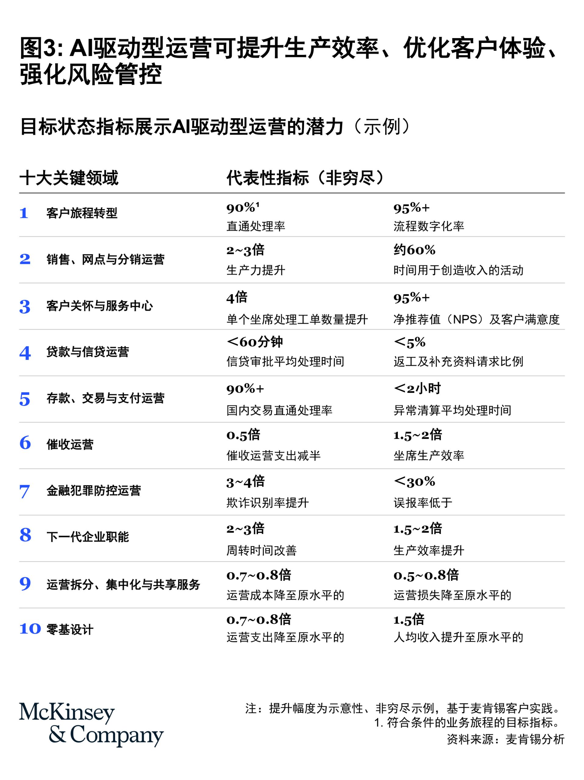这些先行者成效显著,可将效率提升30%至50%,生产力提升2至3倍,客户体验实现跨越式改善。